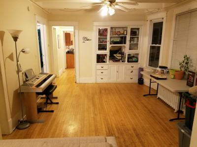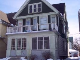 Upper 3 Bedroom upper with newer kitchen, hardwood floors, built in buffet, FREE laundry in basement, carpeted bedrooms, second floor front porch. 2 parking spaces included. Fixed cat ok. Non smoking building.