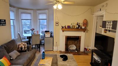 Upper Front 2 BR Unit with heat, beautiful hardwood floors. Historic castle building with unique turret window over looking Maryland Ave. One block from UWM with private porch. Dishwasher & microwave, parking included. Coin laundry and storage in basement. Fixed cat OK.